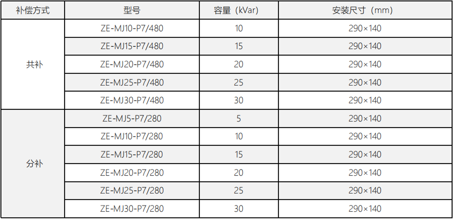 ZE-MJ系列諧波抑制型智能電容應用于0 .4KV低壓配電網中的高效節能、抑制諧波、提高功率因數的新一代無功補償設備,替代傳統由無功補償控制器、熔絲、投切開關、濾波電抗器及電力電容器等散件組成的無功補償設備。