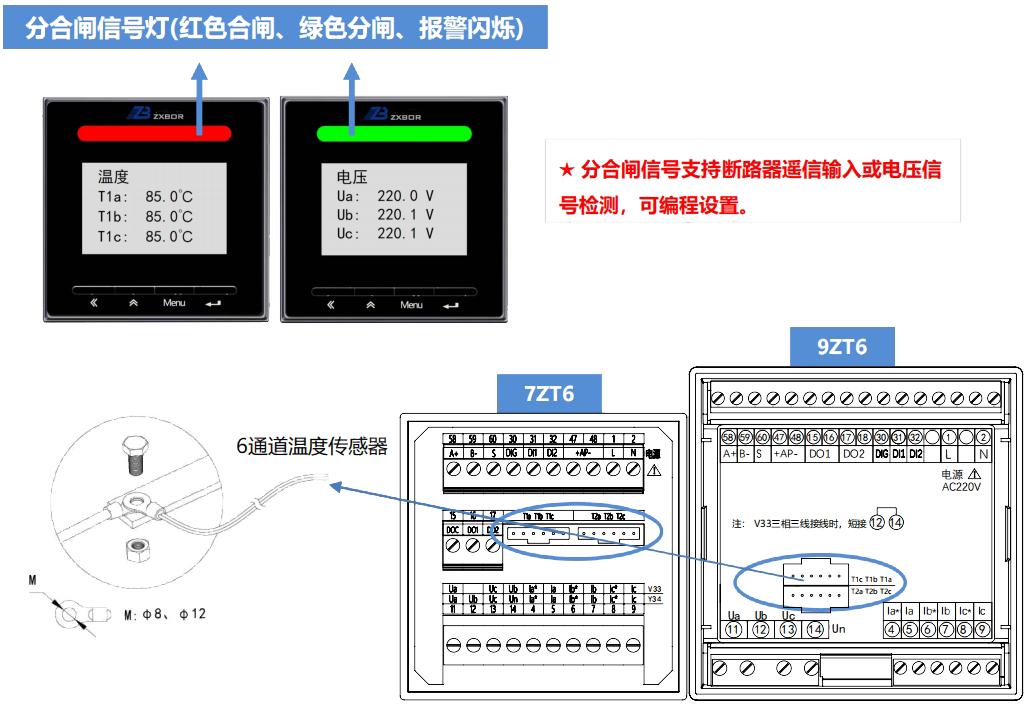 ZE750-9ZT/7ZT是中訊博爾為智能配電柜、預智柜定制開發(fā)的新一代智能配電監(jiān)控裝置,產品不僅集成了傳統電力儀表全電量監(jiān)測、電能計量等功能,內置超高亮度分閘、合閘指示燈,可替代傳統信號燈,集成6點測溫功能,不間斷監(jiān)測配電柜關鍵母排插接處或電纜接頭處升溫,具備過欠壓、過流、超溫報警聯動功能,裝置具備完善的諧波和電力質量監(jiān)測、事件記錄追溯分合閘動作、超溫報警等。產品適用于各類智能配電系統,廣泛應用于工業(yè)、商業(yè)、民用供配電系統。