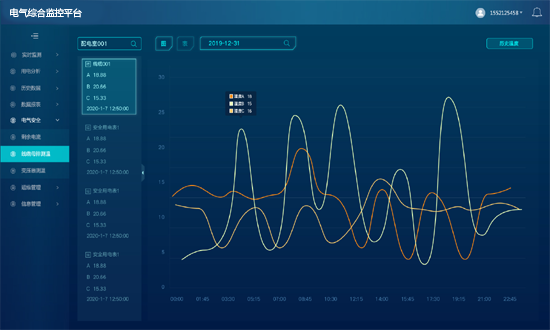 系統能實時顯示各安裝火災報警回路一次圖,并顯示各回路剩余電流值和溫度信息,系統具有:越線報警,故障定位,遠程設置等功能。