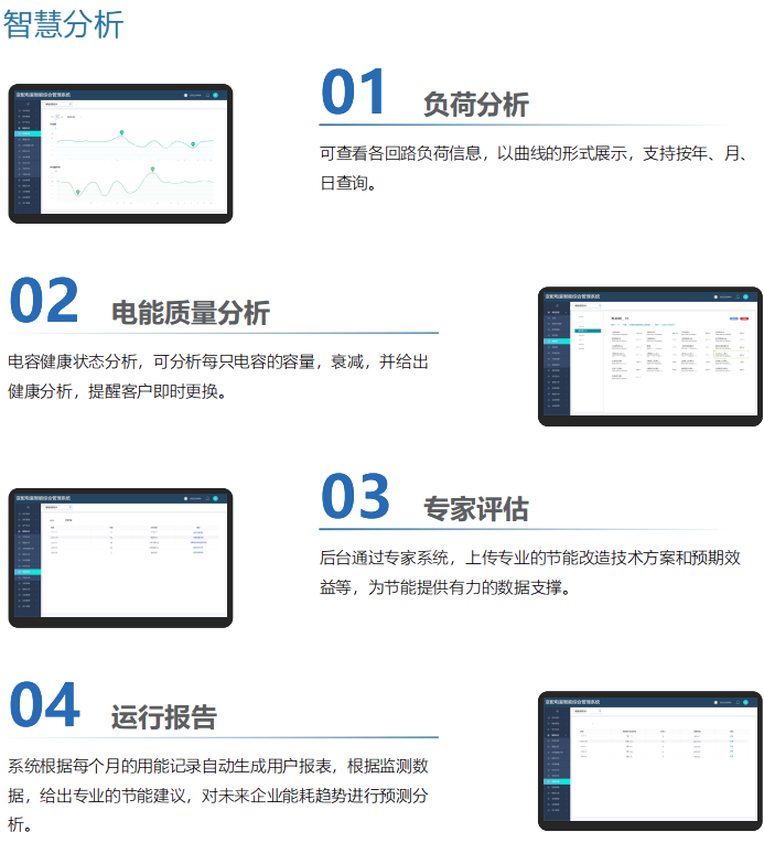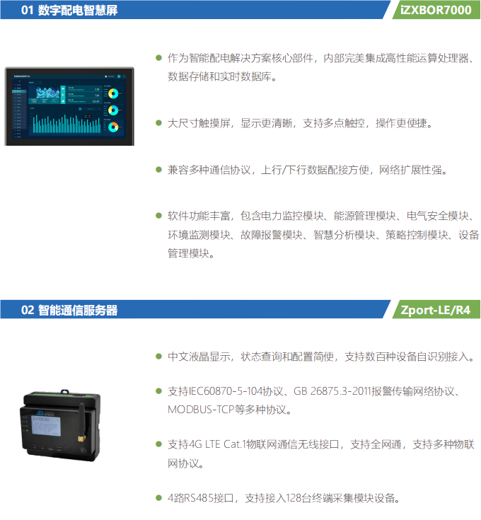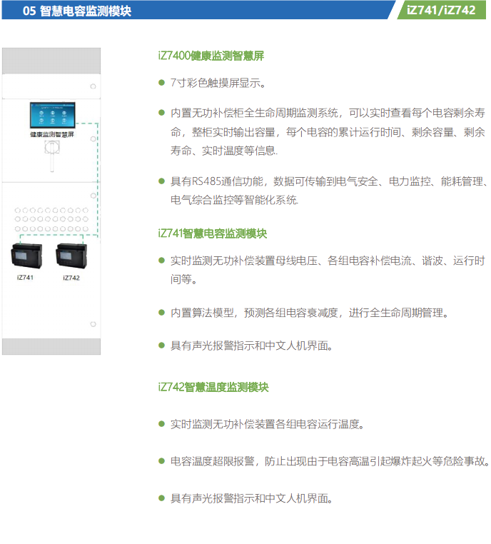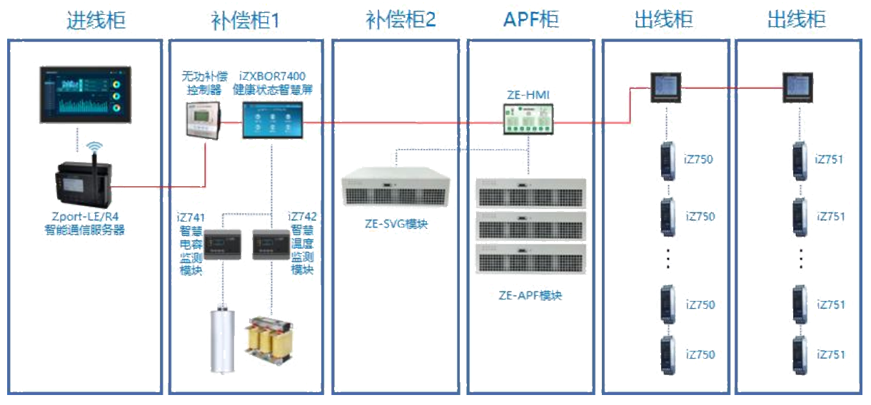 傳統(tǒng)配電柜通過(guò)加裝我公司自主研發(fā)的iZXBOR7000數(shù)字配電智慧屏、iZ750系列輕量化采集模塊、iZ741與iZ742系列智慧電容監(jiān)測(cè)模塊、電氣安全采集模塊等設(shè)備,組成智能化監(jiān)測(cè)系統(tǒng),實(shí)現(xiàn)配電柜的智能化、數(shù)字化升級(jí)。