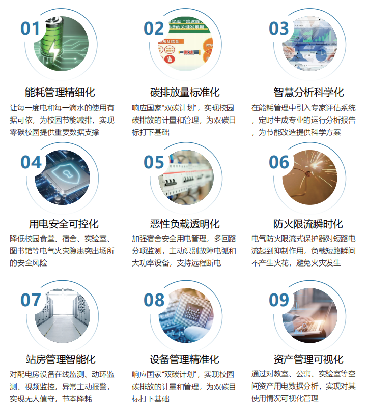 中訊博爾從校園能耗管理及電氣安全預警入手,利用新一代云計算、物聯網技術為學校提供 “精細化能耗及電氣安全系統”整體解決方案,為實現智慧校園、零碳校園提供重要的科技支撐。