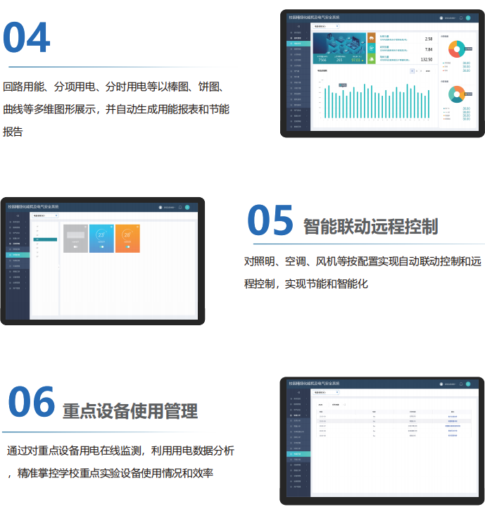 校園能源及設備安全管理是教育教學活動正常運轉的基礎條件,是校園正常運行的重要組成部分。通過智能化手段優化能源管理流程,建立客觀能源消耗評價體系,對實現高效節能和用電安全至關重要。